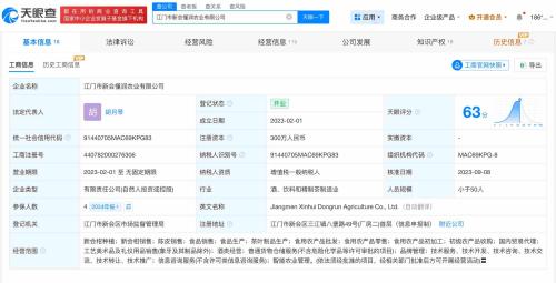 天眼查工商信息显示,涉事公司江门市新会区古道柑普茶业有限公司成立于2017年1月,法定代表人为颜财源,注册资本100万人民币,经营范围包括茶叶制品生产、食品生产、食品销售、陈皮销售等。股东信息显示,该公司由颜财源全资持股。此外,涉事公司江门市新会懂润农业有限公司成立于2023年2月,法定代表人为胡月琴,注册资本300万人民币,经营范围包括新会柑种植、新会柑销售、陈皮销售、食品销售等。股东信息显示,该公司由胡月琴、梁家焕共同持股。