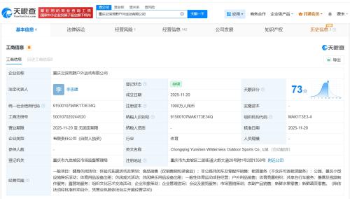天眼查经营风险信息显示,近日,重庆云深荒野户外运动有限公司因通过登记的住所或者经营场所无法联系,被重庆市九龙坡区市场监督管理局列入经营异常名录。