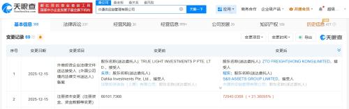 天眼查App显示,近日,中通供应链管理有限公司发生工商变更,注册资本由约6亿人民币增至约7.3亿人民币,增幅约21%。