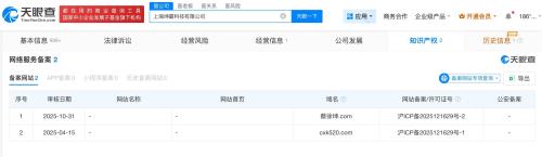 天眼查App显示,近日,上海坤霸科技有限公司备案“蔡徐坤.com”域名审核通过。搜索发现,该域名已有网页上线,网页为某游戏内容。知识产权信息显示,此前,该公司已备案“cxk520.com”域名。