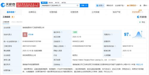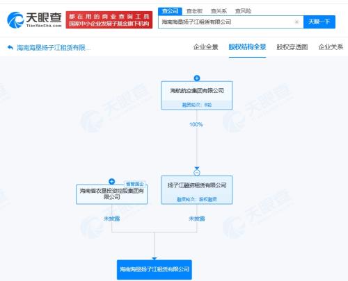 天眼查App显示,近日,海南海垦扬子江租赁有限公司成立,法定代表人为吕东锴,注册资本9亿人民币,经营范围包括运输设备租赁服务、航空商务服务、航空运输设备销售等,由海航航空集团旗下扬子江融资租赁有限公司、海南省农垦投资控股集团有限公司共同持股。