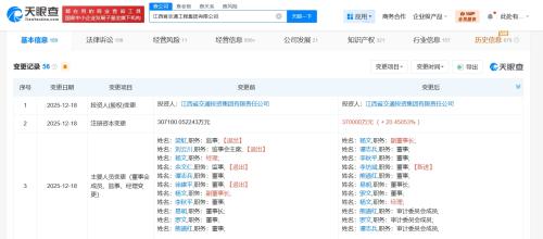 天眼查App显示,近日,江西省交通工程集团有限公司发生工商变更,注册资本由约30.72亿人民币增至37亿人民币,增幅约20%,同时,多位高管发生变更。