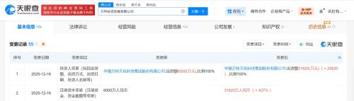天眼查App显示,近日,方特投资发展有限公司发生工商变更,注册资本由6000万人民币增至约3.2亿人民币,增幅427%。