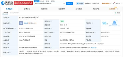 天眼查工商信息显示,近日,湖北济民军民科技创新有限公司成立,法定代表人为贺怡帆,注册资本6亿人民币,经营范围包括集成电路设计、软件开发、信息系统集成服务、信息技术咨询服务等。股东信息显示,该公司由济民健康(603222)全资持股。