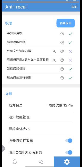3个核心权限授予后,把应用挂在后台就行了。它会自动记录微信QQ的通知消息,方便我们随时回看。