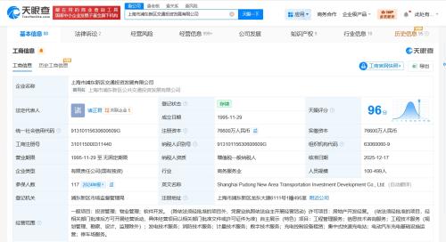 天眼查App显示,近日,上海市浦东新区交通投资发展有限公司发生工商变更,注册资本由5亿人民币增至7.66亿人民币,增幅约53%。