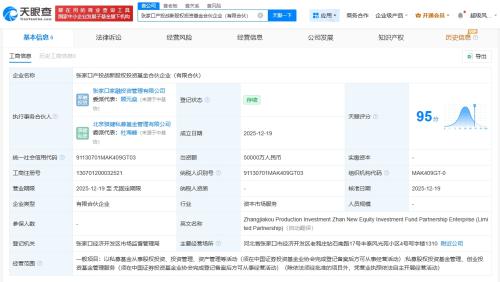 天眼查工商信息显示,近日,张家口产投战新股权投资基金合伙企业(有限合伙)成立,执行事务合伙人为张家口家融投资管理有限公司、北京骐健私募基金管理有限公司,出资额5亿人民币,经营范围包括私募股权投资基金管理、创业投资基金管理服务等。合伙人信息显示,该基金由张家口聚鑫股权投资基金合伙企业(有限合伙)、河北产业投资引导基金有限公司等共同出资。