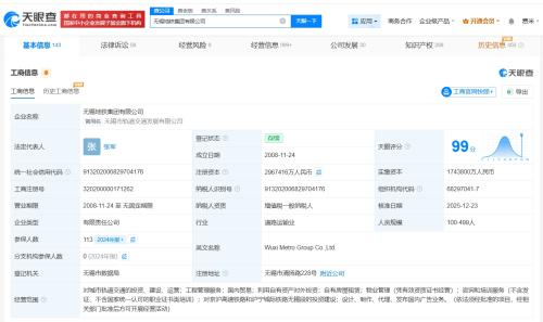 天眼查App显示,近日,无锡地铁集团有限公司发生工商变更,注册资本由174.38亿人民币增至约296.7亿人民币,增幅约70%,同时,部分高管发生变更。
