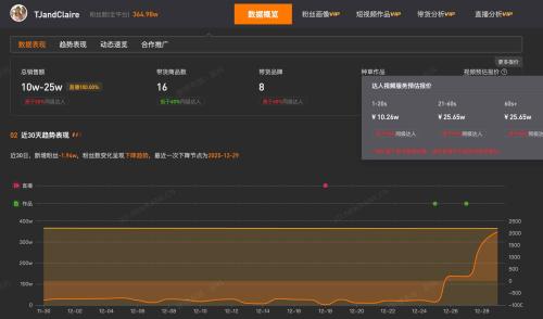 第三方数据显示,“TJandClaire”近30日掉粉1.94万。商业化水平显示,其1-20s视频广告报价为10.26万,21-60s、60s以上视频广告报价均为25.65万。