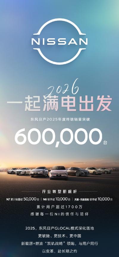 东风日产2025年度终端销量突破60万辆,累计用户超1700万。
