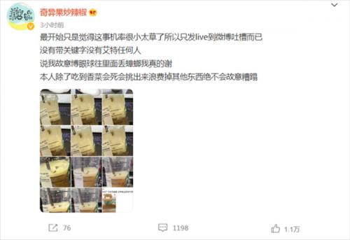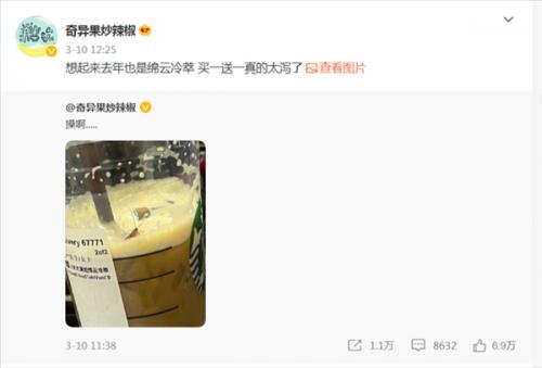 近日,有博主发图称在#星巴克#饮品中喝出活蟑螂,引发热议。