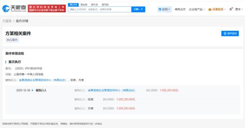 天眼查天眼风险信息显示,近日,方运舟、张勇、宜春浪绫企业管理咨询中心(有限合伙)新增一则被执行人信息,执行标的105万余元,执行法院为上海市第一中级人民法院。