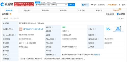 天眼查工商信息显示,近日,厦门海厦联投投资合伙企业(有限合伙)成立,出资额5亿人民币,经营范围为以自有资金从事投资活动。合伙人信息显示,该合伙企业由厦门半导体投资集团有限公司、厦门海创新兴产业投资有限公司共同出资。