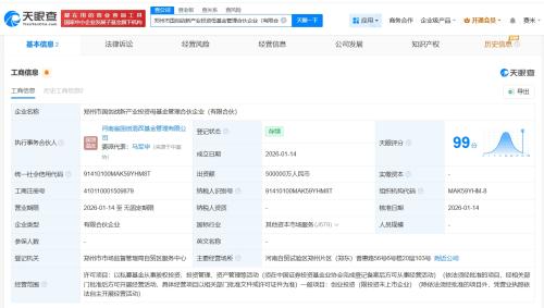 天眼查工商信息显示,近日,郑州市国创战新产业投资母基金管理合伙企业(有限合伙)成立,执行事务合伙人为河南省国创混改基金管理有限公司,出资额50亿人民币,经营范围为以私募基金从事股权投资、投资管理、资产管理等活动,创业投资。合伙人信息显示,该基金由河南省国创混改基金管理有限公司、郑州产业投资集团有限公司共同出资。
