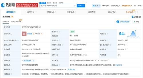天眼查工商信息显示,近日,遂宁万达广场投资有限公司发生工商变更,原股东大连万达商业管理集团股份有限公司退出,新增中国建筑一局(集团)有限公司为全资股东,吴华卸任法定代表人,由吴国强接任,同时多位主要人员发生变更。