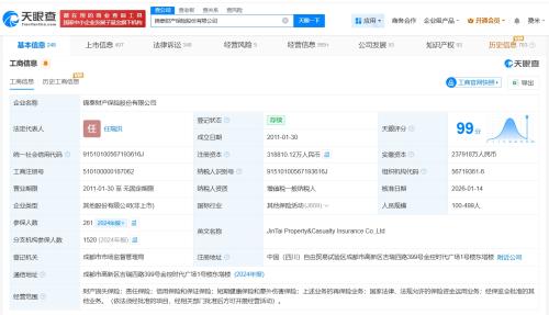 锦泰财产保险股份有限公司成立于2011年1月,法定代表人为任瑞洪,经营范围包括财产损失保险、责任保险、信用保险和保证保险等。股东信息显示,该公司由成都交子金融控股集团有限公司、成都产业资本控股集团有限公司、成都环境投资集团有限公司等共同持股。