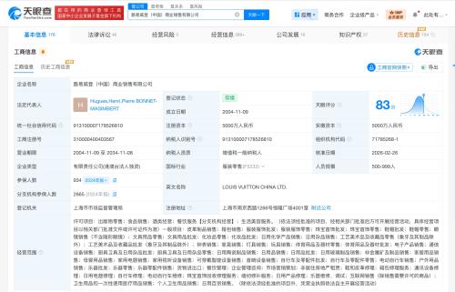 天眼查App显示,近日,LV中国关联公司路易威登(中国)商业销售有限公司发生工商变更,DAVID PONZO卸任法定代表人、董事长,由Hugues,Henri,Pierre BONNET-MASIMBERT接任。路易威登(中国)商业销售有...