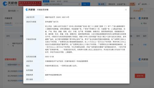天眼查工商信息显示,无锡戴可思生物科技有限公司成立于2017年6月,法定代表人为张晓军,注册资本约375.6万人民币,经营范围含出版物批发、出版物零售、在线数据处理与交易处理业务、生物化工产品技术研发、母婴用品制造等。股东信息显示,该公司由张晓军、祥峰(厦门)投资合伙企业(有限合伙)、珠海拉芳品观华熙投资基金合伙企业(有限合伙)等共同持股。天眼风险信息显示,2025年12月,该公司因发布虚假广告行为,被无锡高新技术产业开发区(无锡市新吴区)市场监督管理局罚款0.5万元。