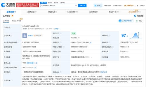 天眼查App显示,近日,东风华神汽车有限公司发生工商变更,注册资本由约10.4亿人民币增至约11.5亿人民币,增幅约10%,同时,孙振义卸任董事长,由金谋志接任。
