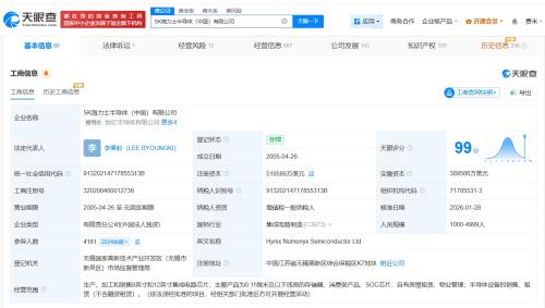 该公司成立于2005年4月,注册资本约52亿美元,经营范围包括半导体设备的销售、租赁等,由SK海力士株式会社全资持股。