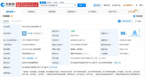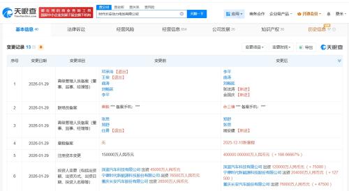天眼查App显示,近日,时代长安动力电池有限公司发生工商变更,注册资本由15亿人民币增至40亿人民币,增幅约167%。