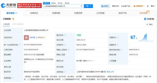 天眼查App显示,2月3日,上海觅蜂具身智能科技有限公司成立,法定代表人为姚卯青,注册资本500万人民币,经营范围包括人工智能应用软件开发、智能机器人的研发、人工智能基础软件开发等,由智元机器人关联公司智元创新(上海)科技股份有限公司、上海蜂合睿力科技合伙企业(有限合伙)共同持股。