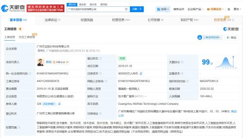 广州文远知行科技有限公司成立于2018年1月,法定代表人为韩旭,经营范围包括物联网技术研发、人工智能基础软件开发、人工智能应用软件开发等。股东信息显示,该公司由WeRide HongKong Limited全资持股。