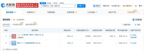 该公司成立于2019年4月,法定代表人为卢春水,经营范围包括家用电器研发、日用家电零售、家用电器销售、电子元器件零售等,由TCL王牌电器(惠州)有限公司、惠州TCL电器销售有限公司共同持股。