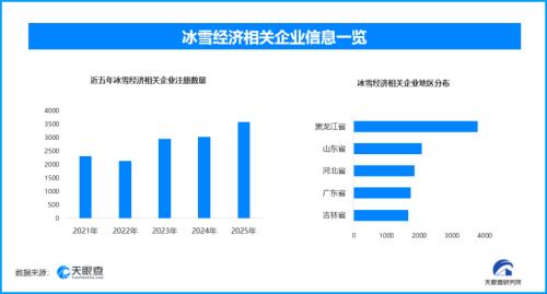 天眼查专业版数据显示,截至目前我国现存在业、存续状态的冰雪经济相关企业超2.6万家。其中,2025年新增注册相关企业超3500余家,从企业注册数量趋势来看,近五年间,除2022年稍有下降外,冰雪经济相关企业的注册数量大体呈现出增长态势,并在2025年达到顶峰。