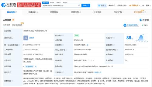 天眼查工商信息显示,近日,常州新北万达广场投资有限公司发生工商变更,原股东大连万达商业管理集团股份有限公司退出,新增中国建筑第二工程局有限公司为全资股东,同时,吴华卸任法定代表人、经理、董事,由连莉莉接任。