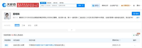 天眼查任职信息显示,董明珠名下关联24家企业,其中10家企业处于存续或者开业等状态,包括珠海格力电器股份有限公司、格力电子商务有限公司等,董明珠在上述企业担任法定代表人、董事长等职务,其他10余家企业已注销或者被吊销。值得一提的是,今年1月,董明珠已卸任珠海格力电子元器件有限公司的法定代表人、执行董事。