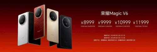 荣耀Magic V6手机今晚发布,共提供12GB+256GB、12GB+512GB、16GB+512GB、16GB+1TB四个版本,售价8999元起。