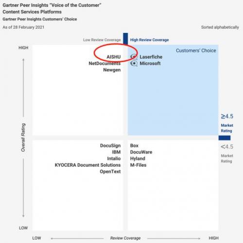 (图源Gartner Peer Insights ‘Voice of the Customer’: Content Services Platforms报告)