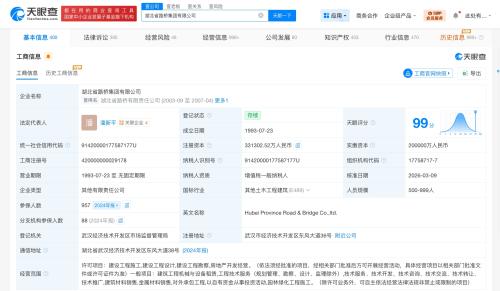湖北省路桥集团有限公司成立于1993年7月,经营范围包括建设工程施工、建设工程设计、建设工程勘察、房地产开发经营等。股东信息显示,该公司由湖北省建设投资集团有限公司、东湖高新(600133)共同持股。