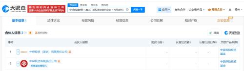 天眼查工商信息显示,近日,中保投融新盈(嘉兴)股权投资合伙企业(有限合伙)成立,执行事务合伙人为游虎,出资额5亿人民币,经营范围为股权投资,由中保投资有限责任公司及旗下中保投资(深圳)有限责任公司共同出资。