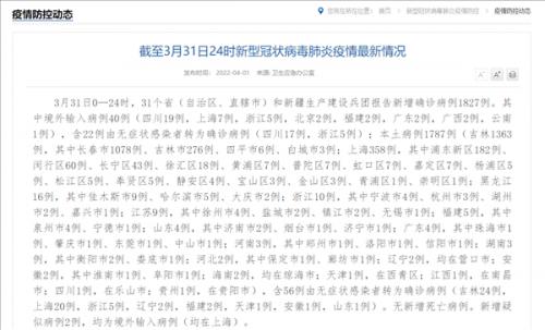 据国家卫健委通报,3月31日0-24时,31个省(自治区、直辖市)和新疆生产建设兵团报告新增本土新冠肺炎确诊病例1787例、本土无症状感染者5442例。