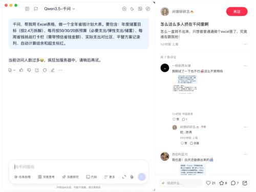 4月14日晚,多位网友在社交平台发帖反映千问Excel生成功能出现排队现象,系统提示"当前访问人数过多"。尝试发现该提示已取消,目前该功能已能正常使用。今日上午,千问发布"表格Agent",这是国内首...