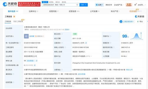 天眼查工商信息显示,近日,长春城投建设投资(集团)有限公司发生工商变更,注册资本由51亿人民币增至56亿人民币,增幅约10%,同时,部分高管发生变更。该公司成立于2011年12月,法定代表人为赵炟焮,...