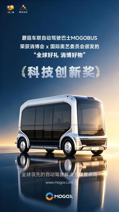 近日,在第六届消博会“全球好礼消博好物”评选中,蘑菇车联MOGOBUS自动驾驶巴士斩获科技创新奖,为唯一获奖的中国自动驾驶巴士产品。