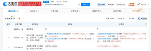 天眼查App显示,近日,广西投资集团金融控股有限公司发生工商变更,注册资本由约153.8亿人民币增至约165.5亿人民币,增幅约8%。