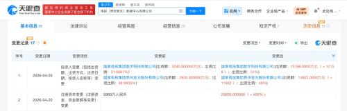 天眼查App显示,近日,电投(贵安新区)数据中心有限公司发生工商变更,注册资本由5960万人民币增至2.98亿人民币,增幅400%。