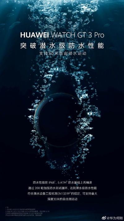 据悉,华为Watch GT3 Pro系列符合潜水设备工程标准EN13319的规定,可支持在海洋中最大深度30米的自由潜运动。
