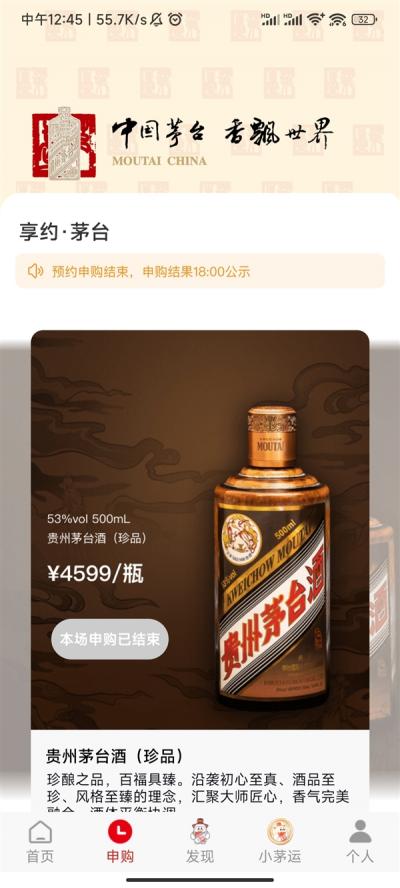 目前i茅台App上投放的四款产品分别为53度500ml“贵州茅台酒(壬寅虎年生肖酒)”;53度500ml“茅台1935”;53度375ml“贵州茅台酒(壬寅虎年生肖酒)”;53度500ml“贵州茅台酒(珍品)”,其中并不包括市面上最火热的53度飞天茅台。