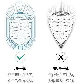 虽然现在市面上0.03产品满天飞,但多数是基于聚氨酯材料制作而成,相比天然乳胶材质技术难度更低,但因为延展性不足,体验感更硬,不如天然乳胶柔软亲肤。截至目前,只有冈本才能在天然乳胶材质上生产出0.03mm薄度的安全套,并且真正做到均一薄至0.03mm。冈本安全套在天然乳胶技术上领先各个品牌几十年之久。