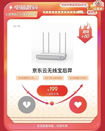 当前用户实时投票选出的上榜产品京东云无线宝AX3000后羿,也是一款非常不错的产品。这款路由器机身采用纯白色设计,能够简单融入到环境氛围中。搭载高通IPQ5018三核处理器,具备独立的网络引擎及4路独立信号放大器,带来3000Mbps的高速连接能力。此外,绑定无线宝APP,在线赚积分还能免费兑换京豆。入选后京东一口价199元。