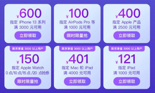 近期正值京东618,超多Apple产品好物都带来了超值活动,购买指定iPhone 13系列满3000元减600元,购买指定Apple产品满2500元减400元等,优惠多多,诚意十足。