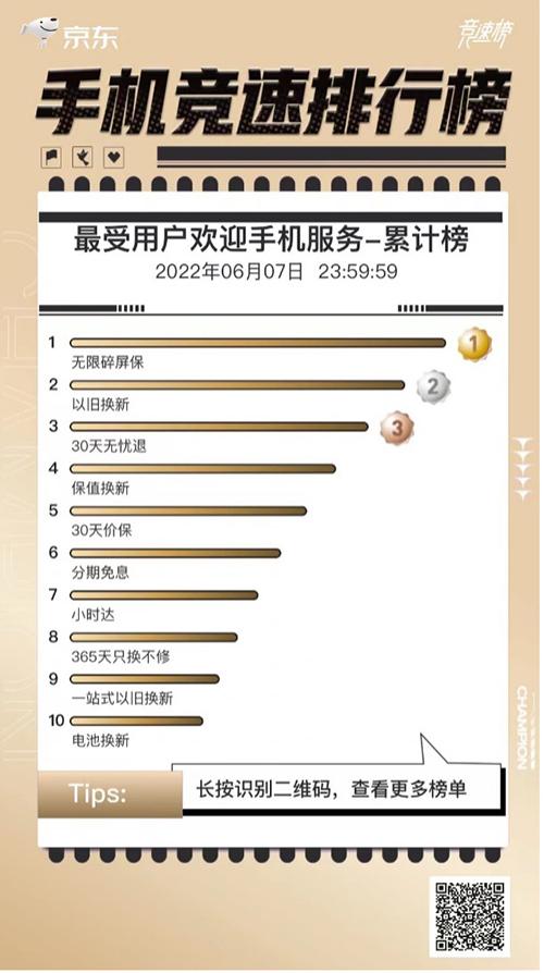 最受欢迎手机服务榜方面,无限碎屏保、以旧换新、30天无忧退最受用户欢迎。其中,无限碎屏保服务指,在京东购买手机时选择碎屏保服务之后,在服务有效期内只要手机磕了碰了屏碎了,都可以免费更换原厂新屏,价格低至69元起,有效解决了用户痛点。