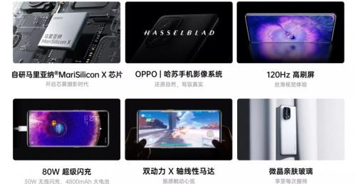 其他方面,Find X5仅8.7mm的机身厚度,重量为196g,不算轻,但也不重,内置4800mAh大电池,同时支持80W超级闪充,以及30W无线闪充。另外NFC、立体声双扬、X轴线性马达等功能基本齐全。