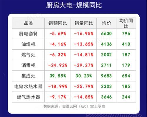 在厨房大家电方面,几乎一片飘红,销额、销量都出现了不同幅度的下降,特别是消毒柜、电储水热水器销量同比下降达到29.27%、25.79%,降幅非常大。唯一实现大幅增长的是集成灶,销量、销额同比增幅30%以上。