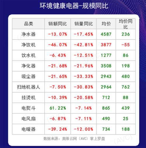 环境健康健康电器的表现更是夸张,满屏的飘红,销量、销额大部分出现了同比下降,净饮水机更是达到了40%+的降幅。当然,唯一一个销售额增长的是电熨斗,销额同比增长61%。